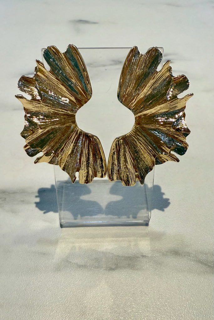 Radiant and unique, these open pedal hoops are textured to catch the light just right. Their statement earrings with an effortless BoHo twist.