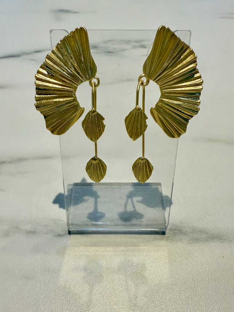 Description: A chic nod to nature, these double-layered ginkgo leaf drops bring movement and elegance with every step. Perfect for elevating day-to-night outfits.