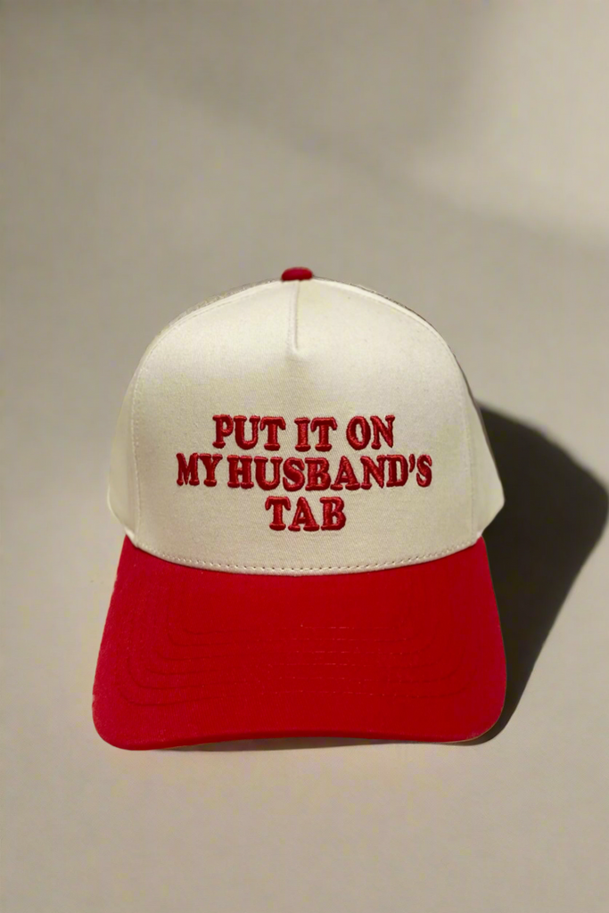 Statement: “Put It On My Husband’s Tab” in bold red letters