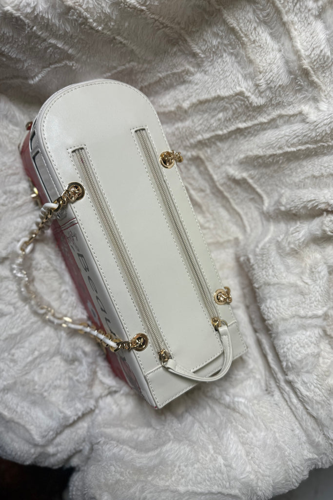 Designed with a structured shape and a stylish chain strap, it keeps your essentials secure while bringing a fun retro flair to your wardrobe.