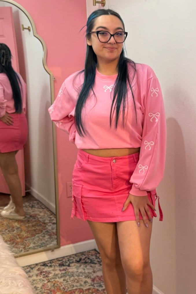 💖 Heartbreaker Hot Pink Mini Denim Cargo Skirt ✨