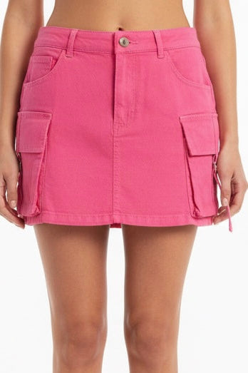 Turn up the energy with this Heartbreaker Hot Pink Mini Denim Cargo Skirt, a playful twist on classic denim. Designed with button and zipper side closure, cargo pockets, and a low-waist fit, this skirt blends edgy utility with flirty charm.
