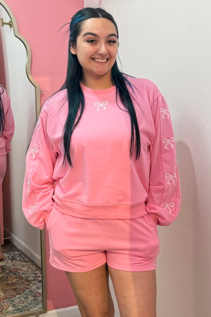 ๐ Soft Girl Ribbon Embroidered โ Cozy Lounge Shorts