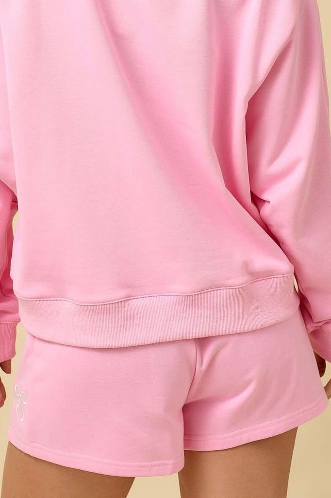 Perfect for slow mornings, cozy nights in, or styling with the matching sweatshirt for a head-to-toe soft girl look. Cute, comfy, and effortlessly pretty โ these shorts are a must-have for your lounge wardrobe.