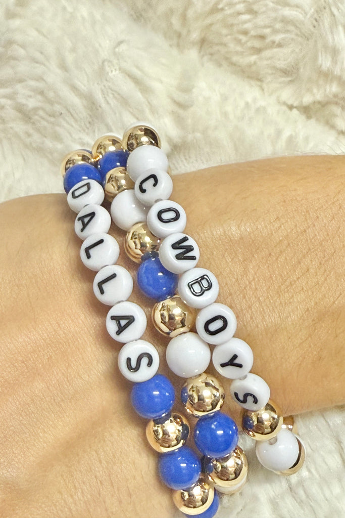 Show off your team pride in style with this Blue, Gold & White Beaded Bracelet Set, inspired by the bold and iconic colors of the Cowboys! This vibrant stack features a beautiful mix of blue, gold, and white beads, creating a fun and fashionable accessory that’s perfect for game day or everyday wear.