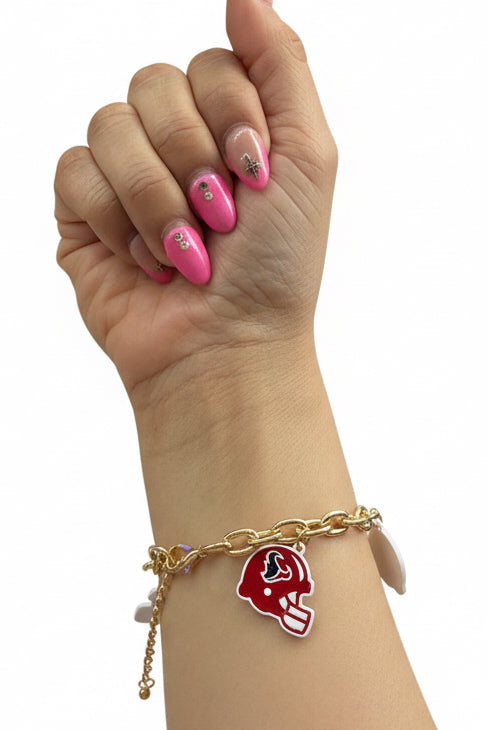 Show off your game day spirit in the cutest way with our Texans Game Day Helmet Charm Bracelet 🏈✨