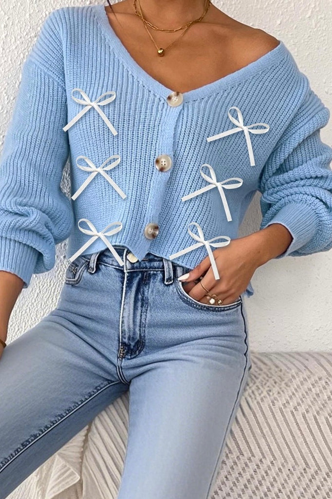🩵💌Love Letter Blue Ribbon Button-Front Knit Cardigan