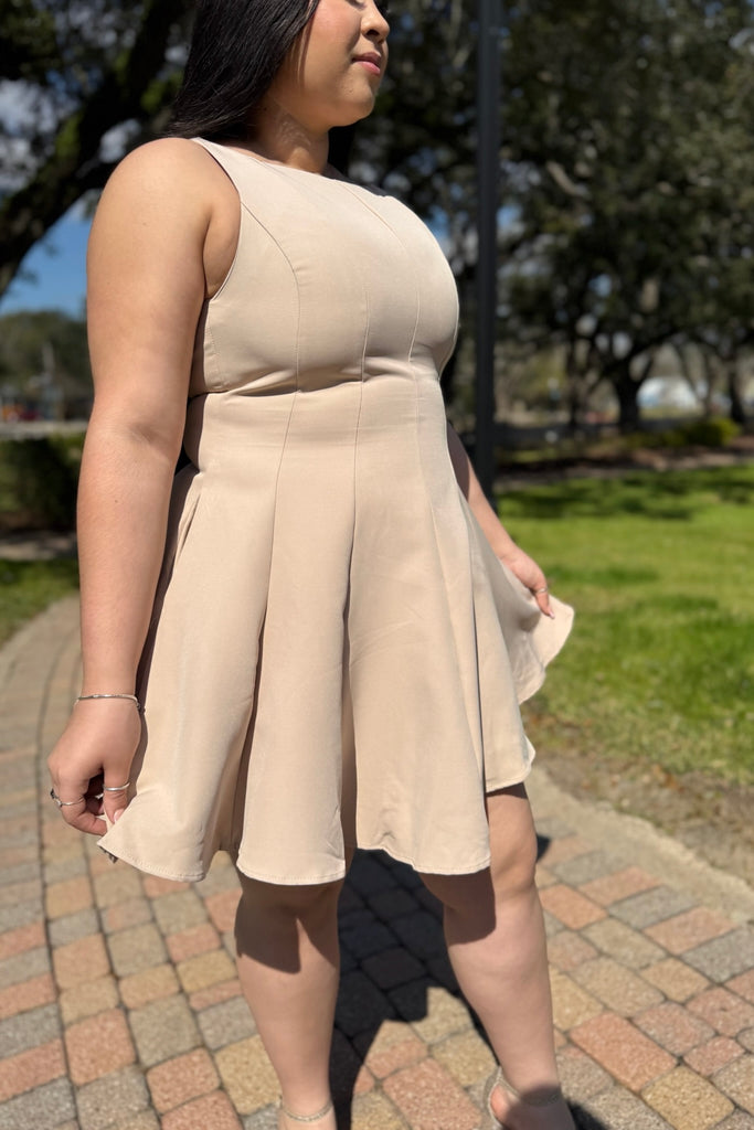 Simple. Timeless. Effortlessly stunning 🤍✨ Our Champagne Glow Fit & Flare Mini Dress is the ultimate go-to for when you want to look polished without trying too hard.