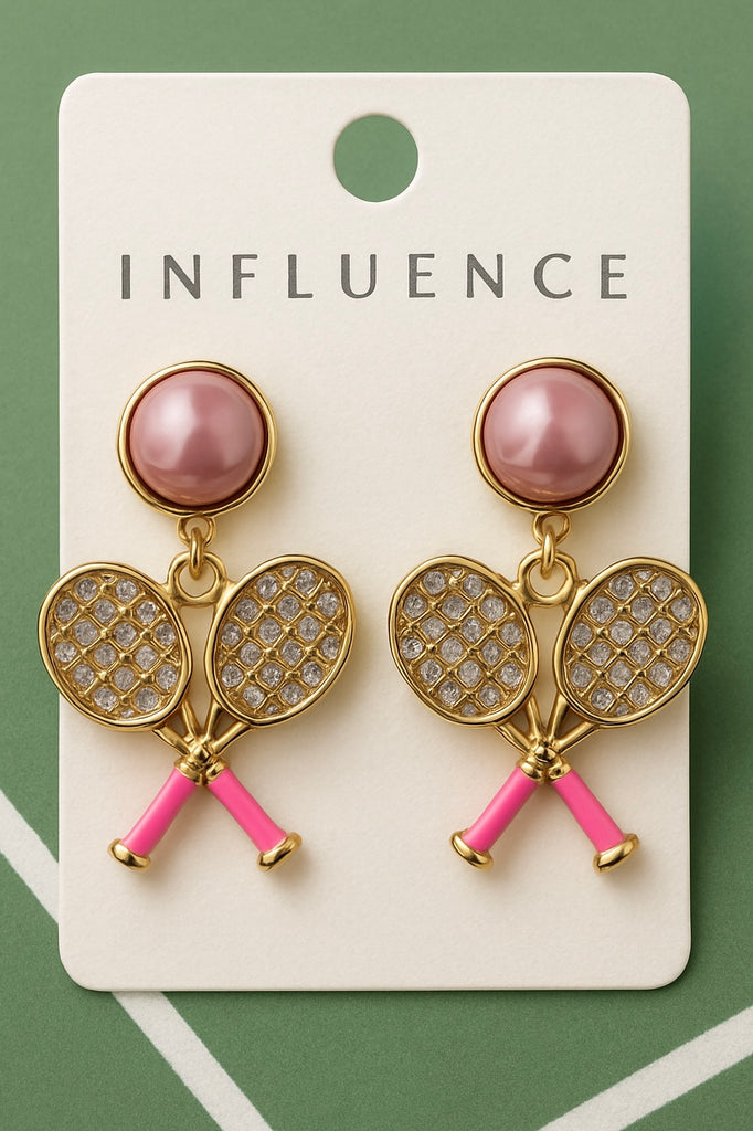 š¾ Pink GlamĀ Tennis RacketsĀ Statement Earrings