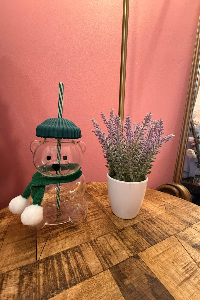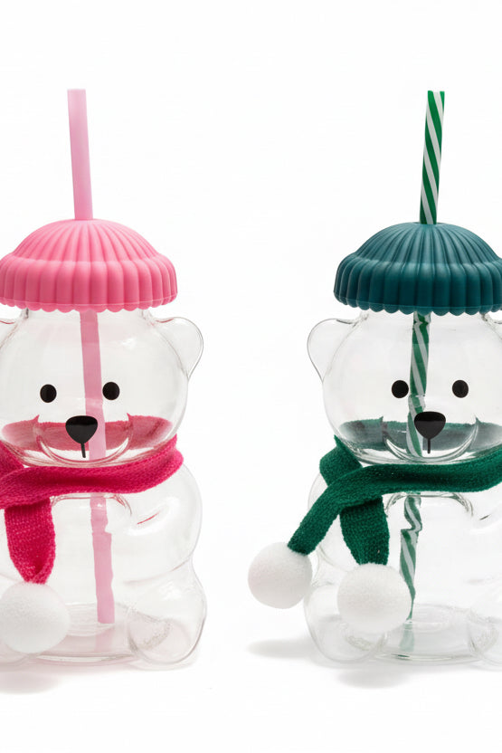 Sip in the cutest way possible with our Be Mine Bear Glass Tumbler! This adorable bear-shaped glass cup features a charming cozy look complete with a knit-style hat lid, matching straw, and a soft scarf with pom-pom details. Perfect for iced coffee, cold brew, tea, juice, or sweet Valentine’s sips, this tumbler adds a playful touch to your daily routine or gift giving.
