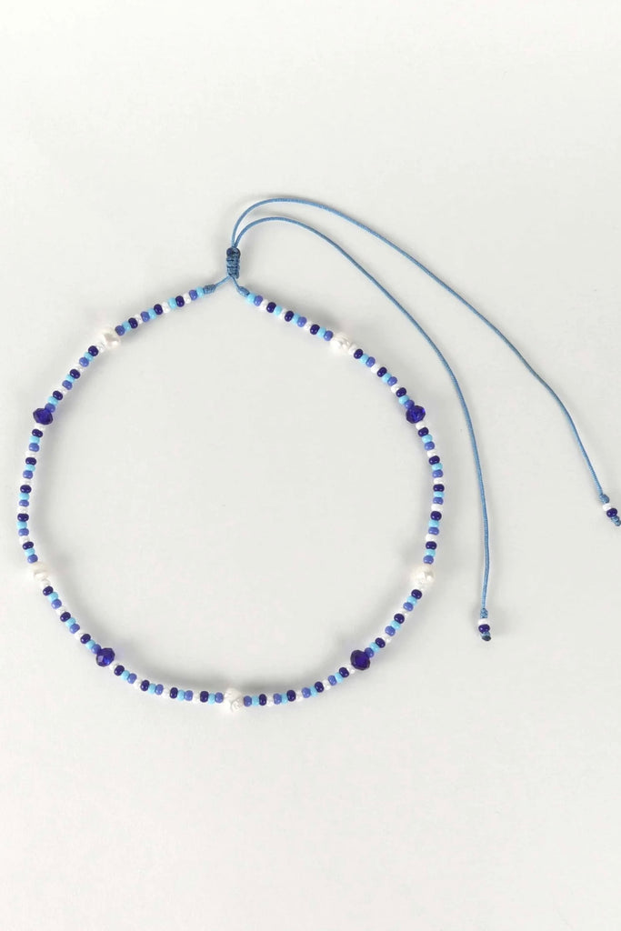 Seed Beads – Fine blue and white beads create a playful, coastal-inspired look