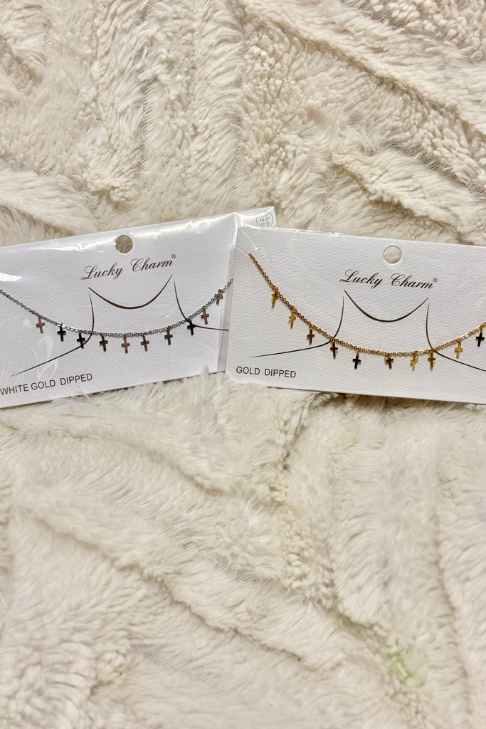 Mini Cross Charm Strand Necklace – Gold Dipped or White Gold Dipped