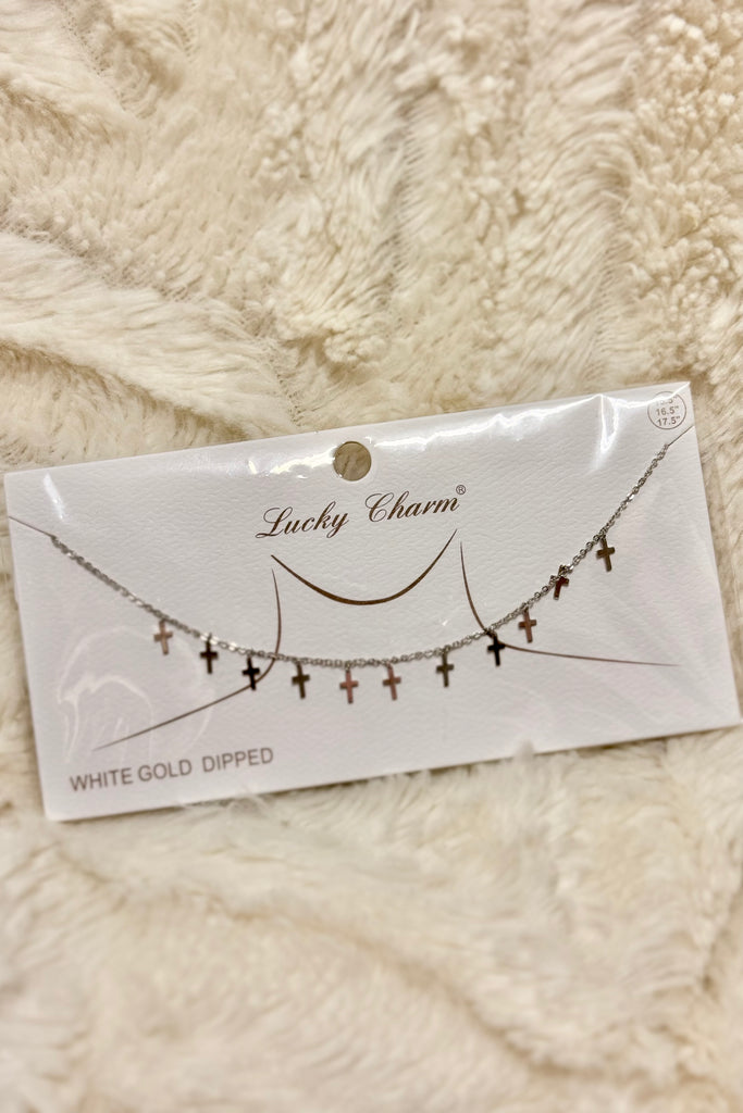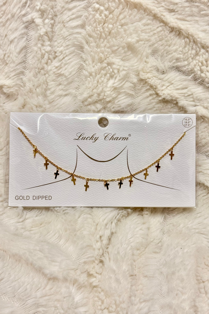 Multiple mini cross charms evenly spaced for a chic layered effect