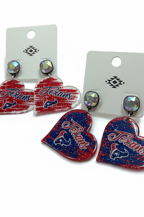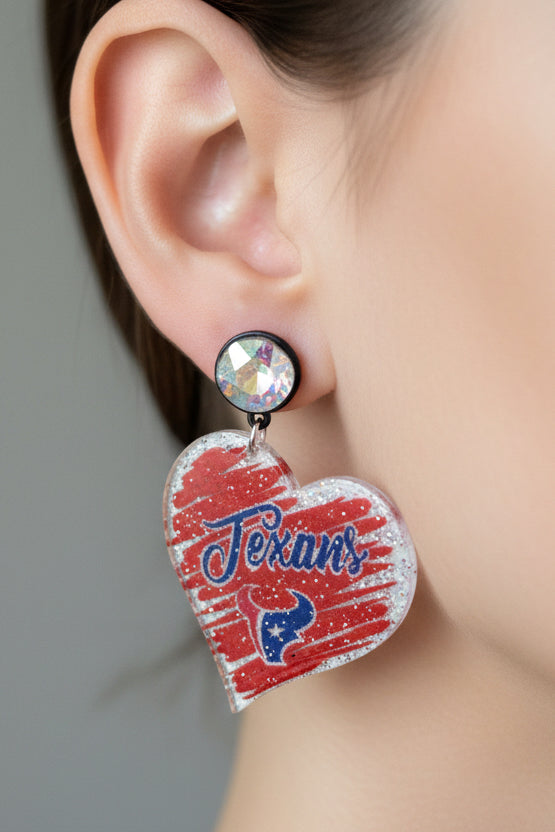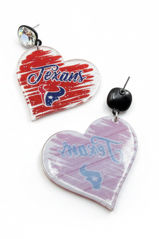 Show your game day love in the cutest way with our Texans Sweetheart Game Day Drop Earrings 🏈❤️