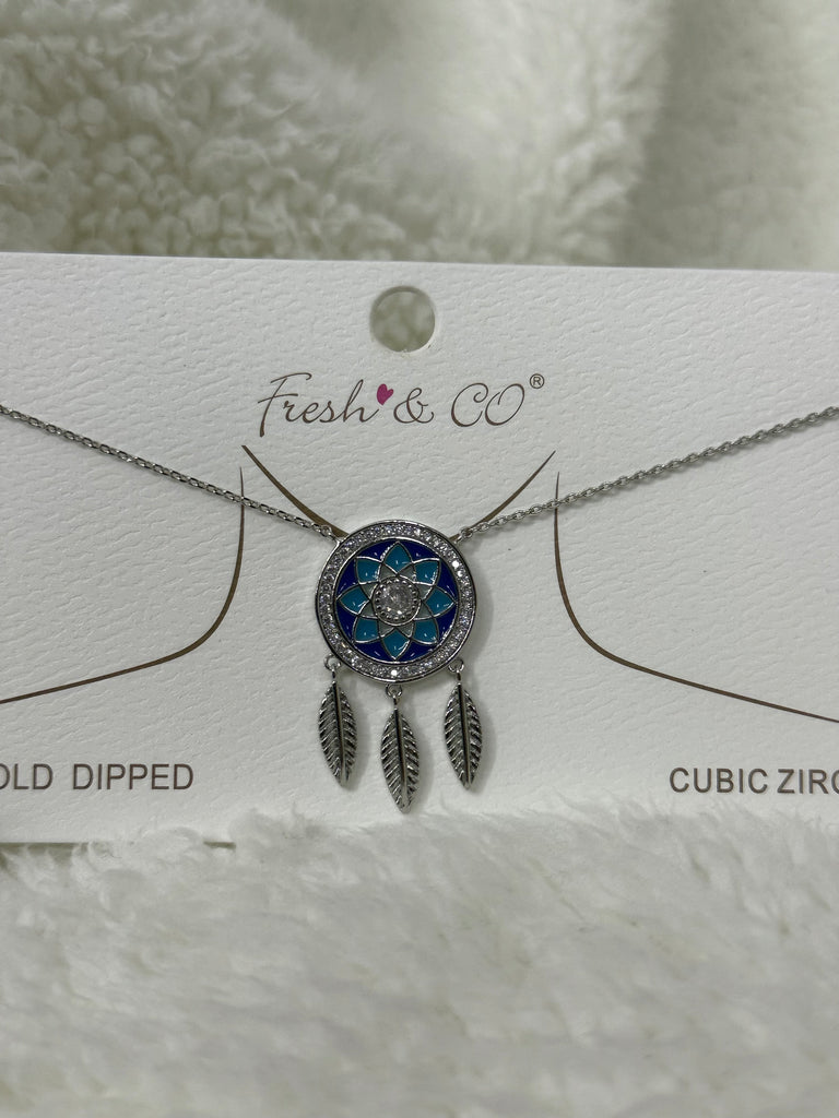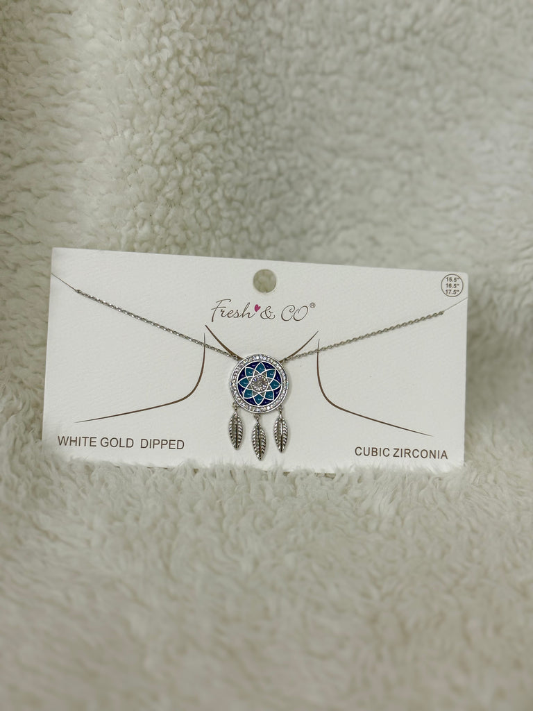 White Gold Dipped Dreamcatcher Pendant Necklace