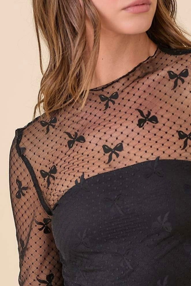 After Dark Ribbon Bow Mesh Long Sleeve Top