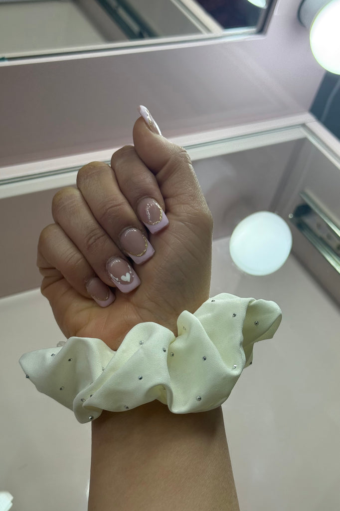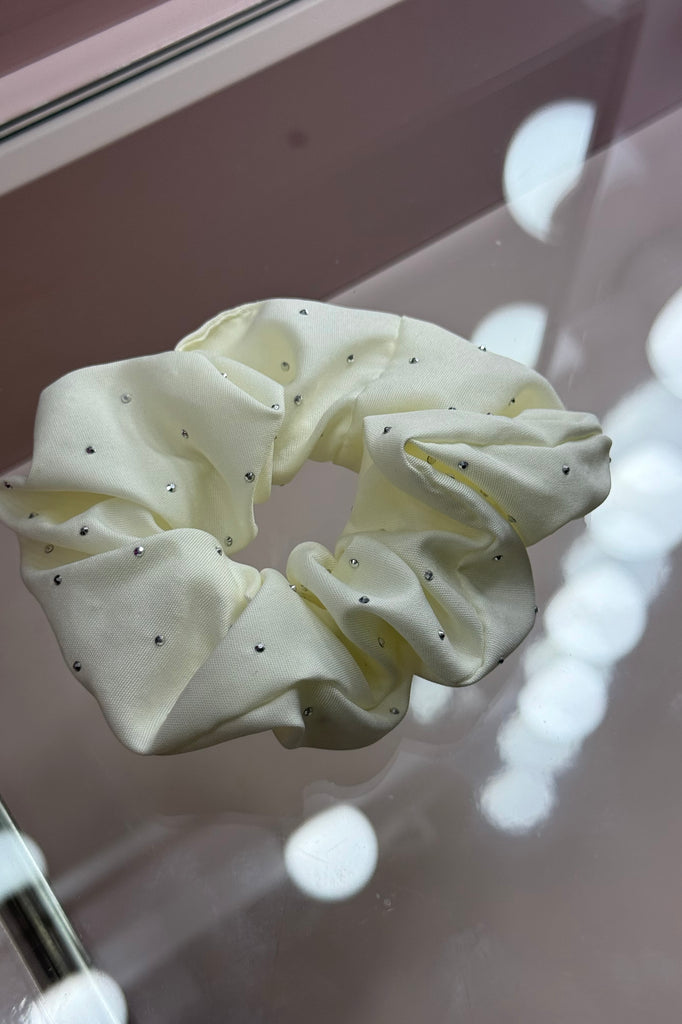• One (1) statement fabric scrunchie with delicate rhinestone accents