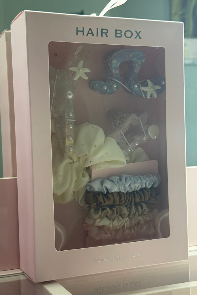 Dive into effortless beauty with The Mermaid Pearl Hair Box — a dreamy, coastal-inspired collection of hair accessories designed to bring soft mermaid vibes to your everyday look. Featuring pearly details, ocean-toned accents, and versatile neutrals, this Hair Box is perfect for beach days, brunch dates, and everything in between.