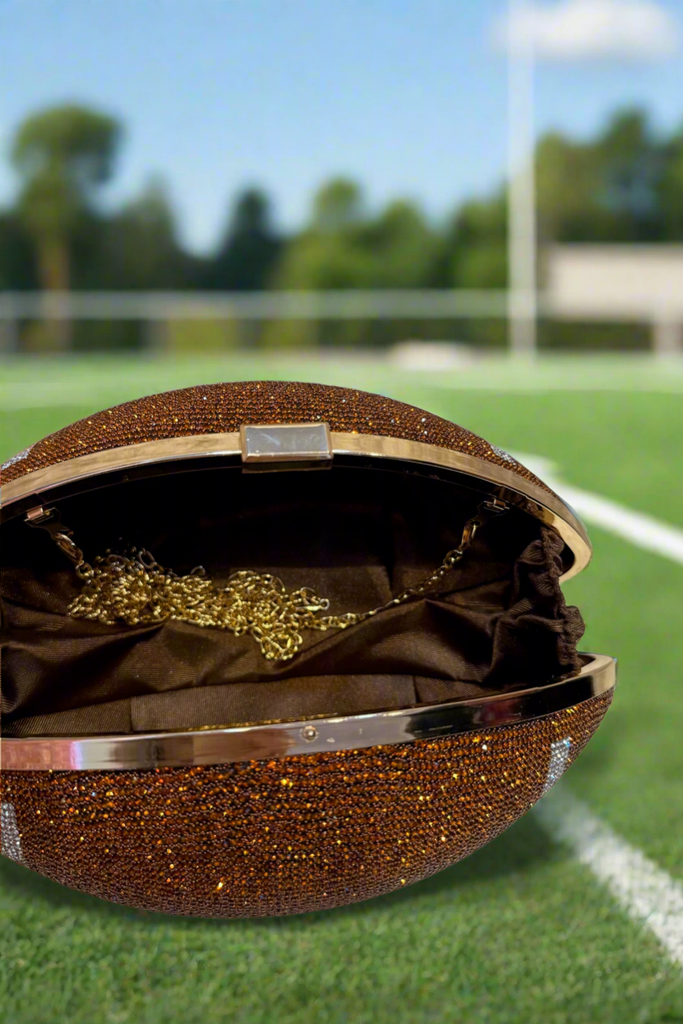 Get ready to shine at your next NFL event with this dazzling rhinestone clutch. Designed to be the ultimate show-stopper, this bag combines sporty spirit with high-glam sparkle. Whether you’re cheering from the stands or celebrating afterward, this clutch will elevate your game-day look.