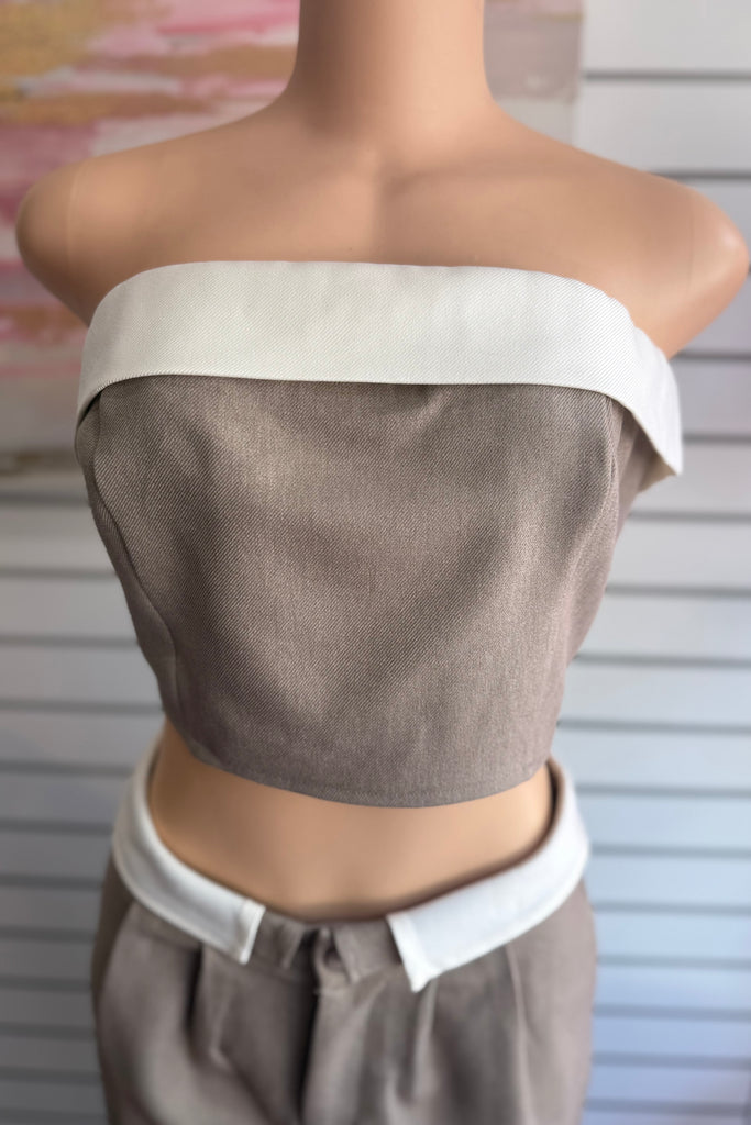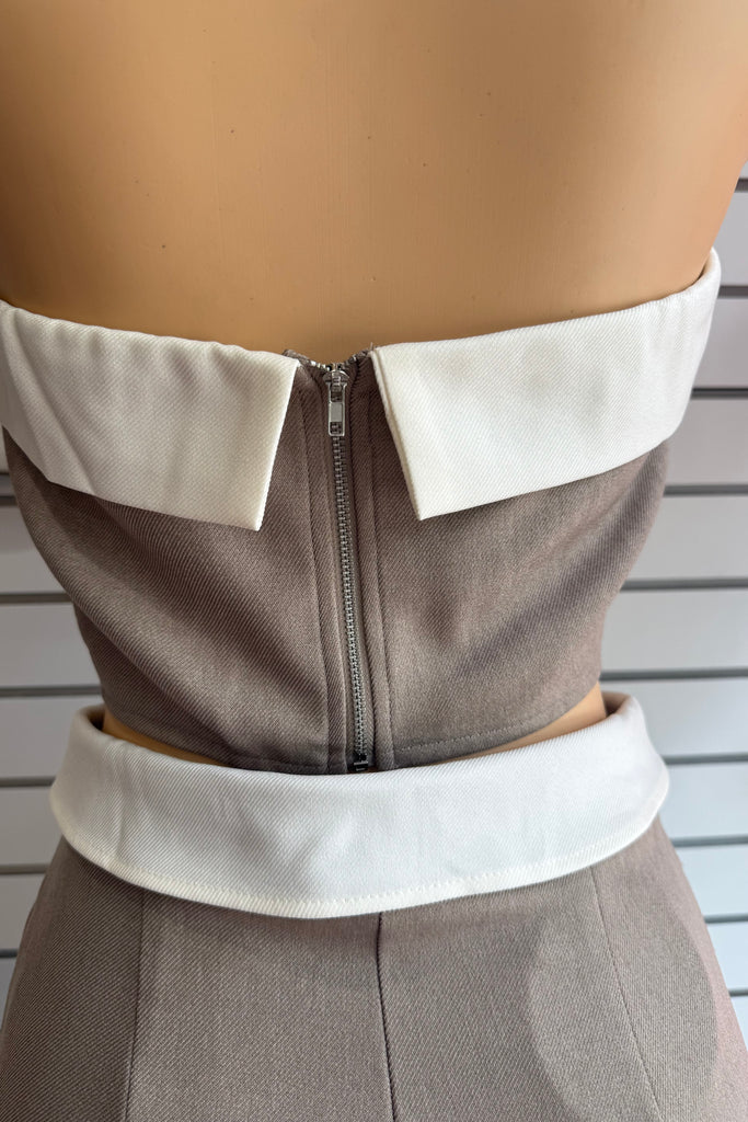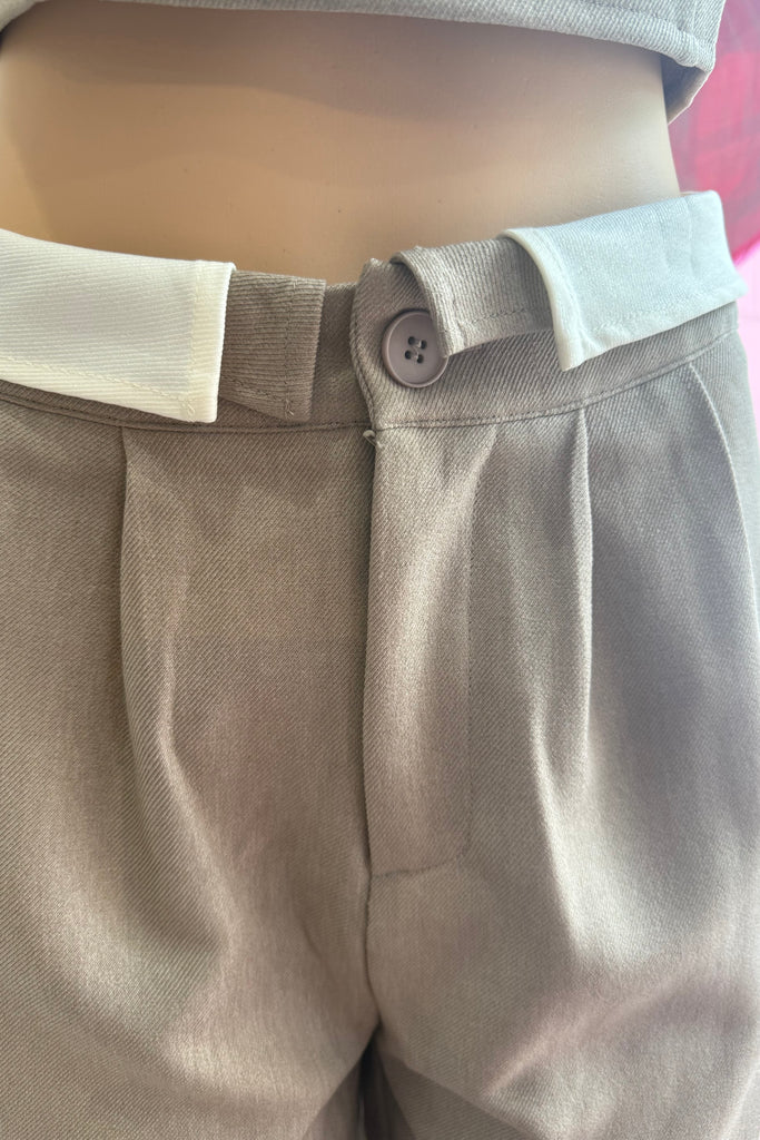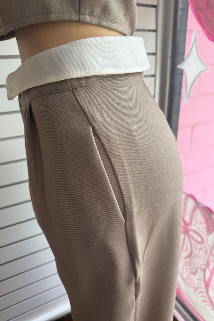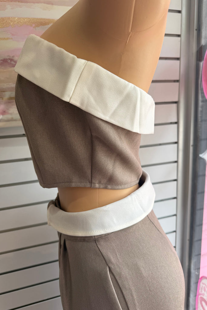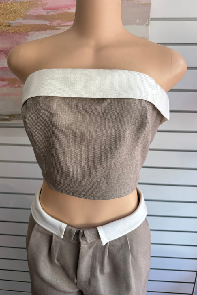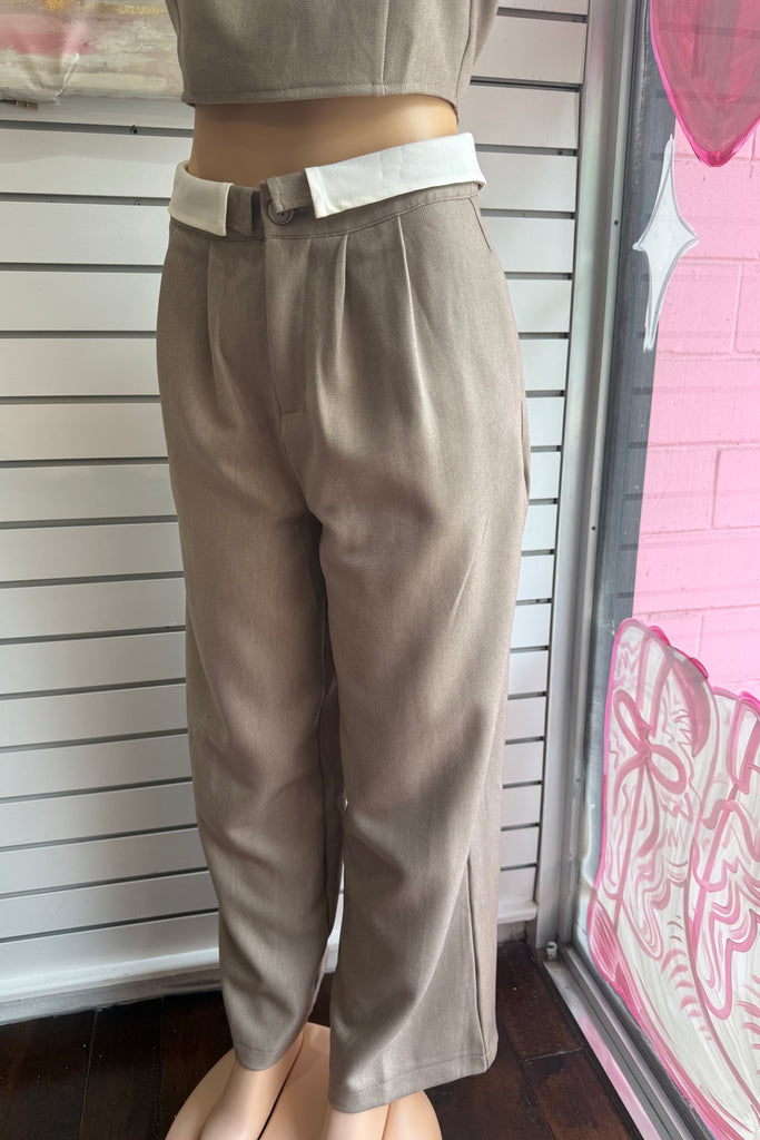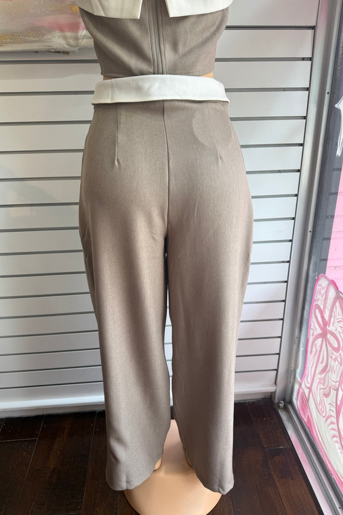 This effortlessly chic matching set features a sleek, minimal top paired with high-waisted tailored straight leg pants for that put-together without trying look. Designed in a versatile neutral taupe tone, this set gives full boss girly chic energywhether you're running errands, heading to brunch, or stepping into your CEO era.