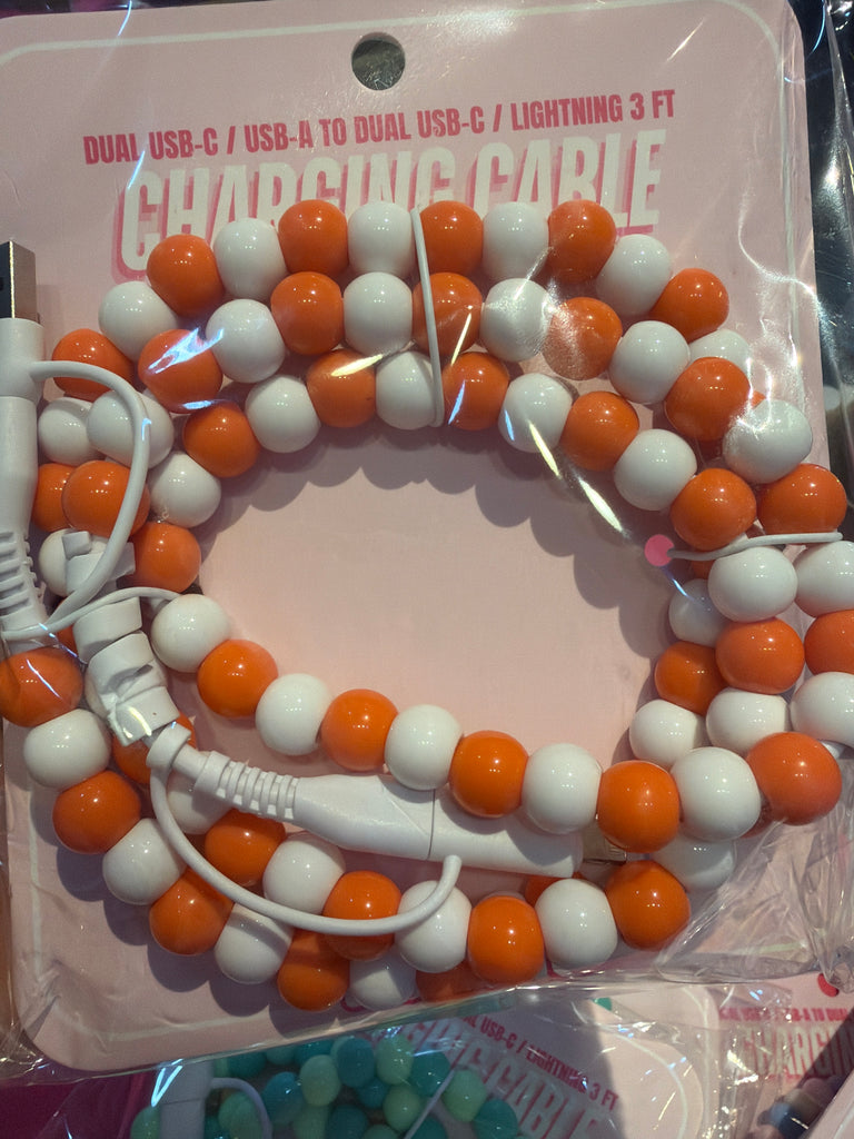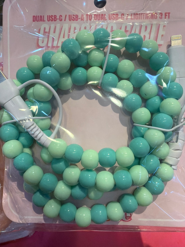 Choose from a pearl or colorful beaded design, and enjoy the convenience of a 4-way charging cable. Add some fun and color to your device charging experience.