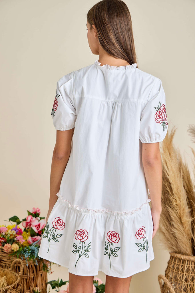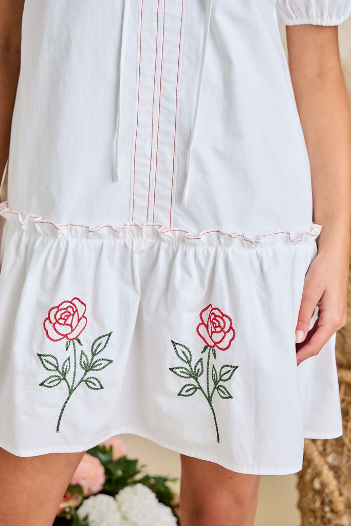 The Houston Rose Rodeo Dress is your perfect blend of sweet Southern charm and modern cowgirl flair. Designed for rodeo days, brunch dates, and boutique strolls, this dreamy white dress features delicate rose embroidery that adds a romantic, girly touch with a subtle Western twist.