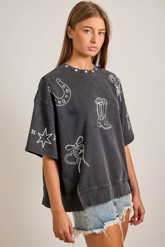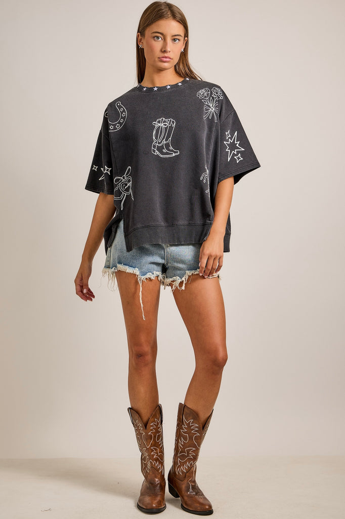 With its relaxed fit and soft washed fabric, it’s perfect for Houston Rodeo days, stock show weekends, or casual Texas nights. Easy to style, comfy to wear, and full of girly cowgirl personality.