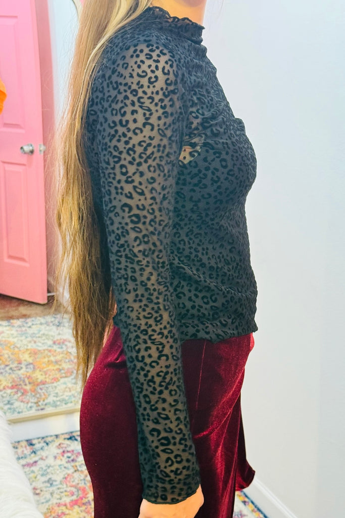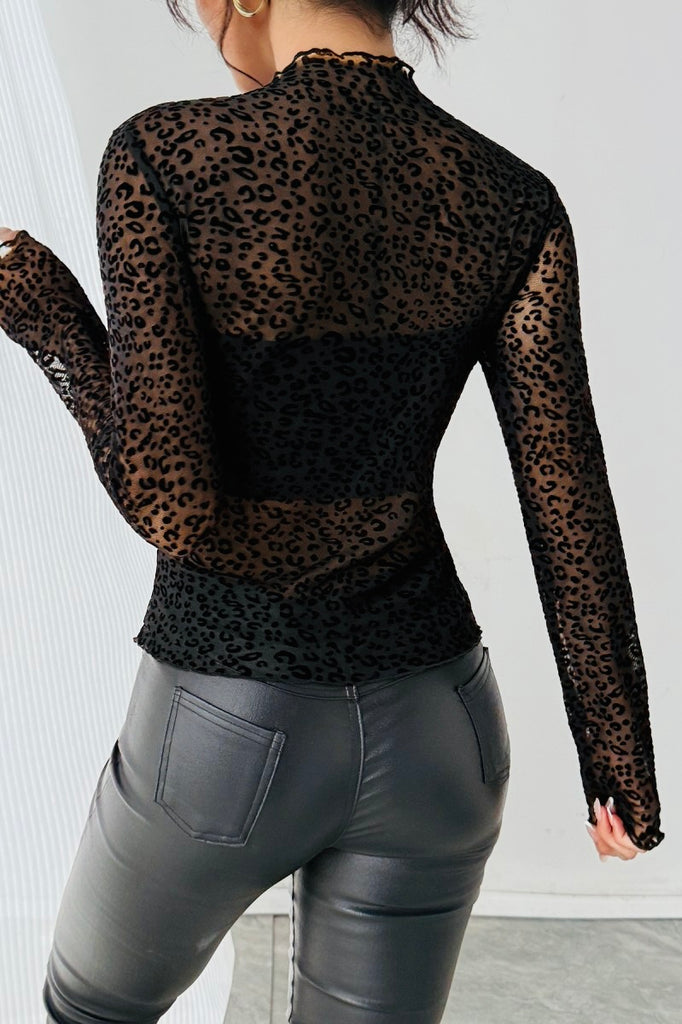 🖤 Flocked Sheer Leopard Mesh Top