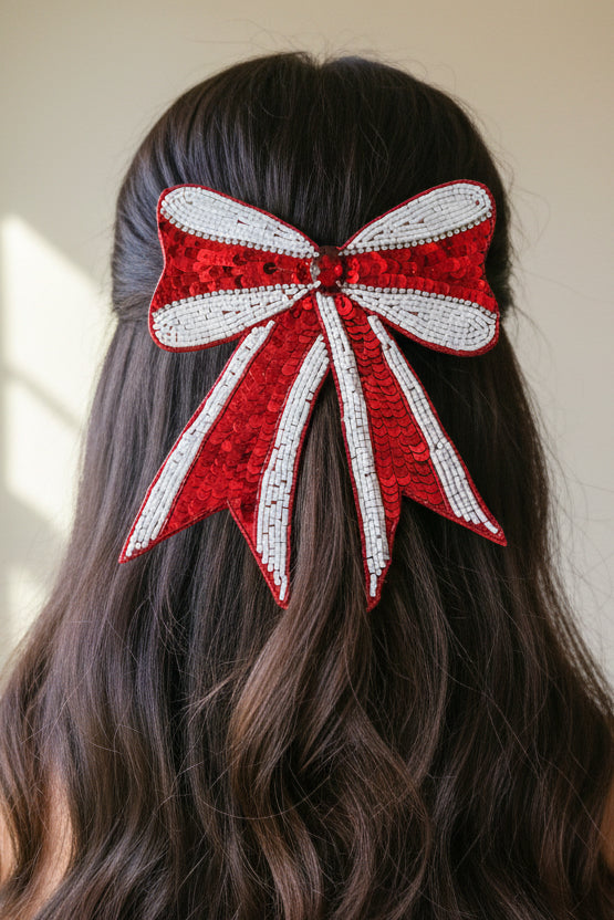 Red Zone Sequin Beaded Bow