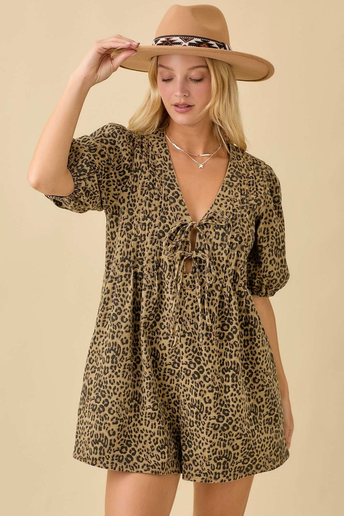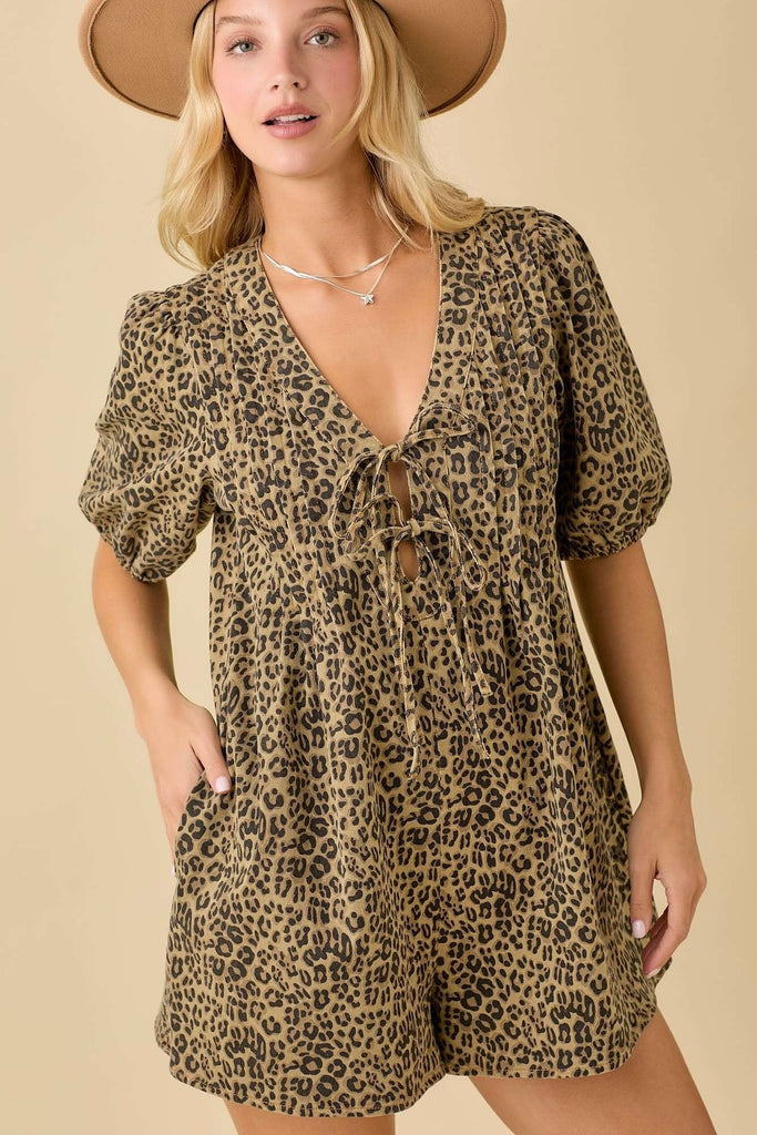 Turn heads with this Leopard Print Denim Romper, where bold meets feminine in the best way. Featuring a pleated front, tie waist detail, and soft stretch denim, this romper blends comfort, structure, and just the right touch of sass.