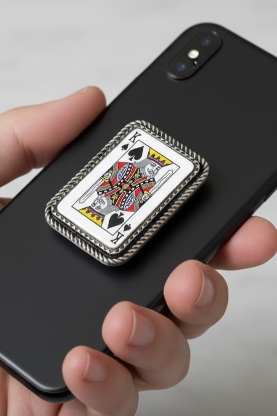 Bring a little rodeo luck to your everyday scroll 🤠♠️ The Wild Card Cowgirl Phone Grip features a bold King of Spades design framed in a western-inspired silver rope detail for that edgy-meets-glam boutique vibe.