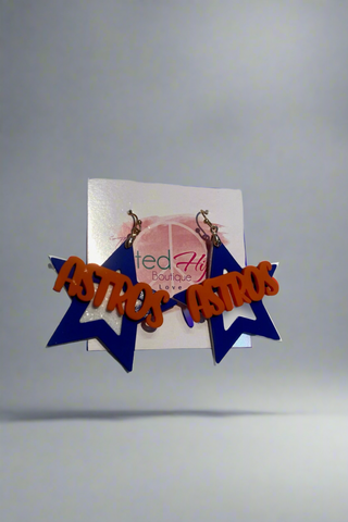 Show off your hometown pride in the boldest way possible with our Starstruck for the ’Stros Earrings! These lightweight earrings feature a navy blue star base with a punchy orange “ASTROS” layered on top—perfect for game days, tailgates, or just reppin’ your team with fierce style. Whether you’re at the ballpark or running errands, these earrings are sure to turn heads and spark some serious Astros spirit. ⚾⭐